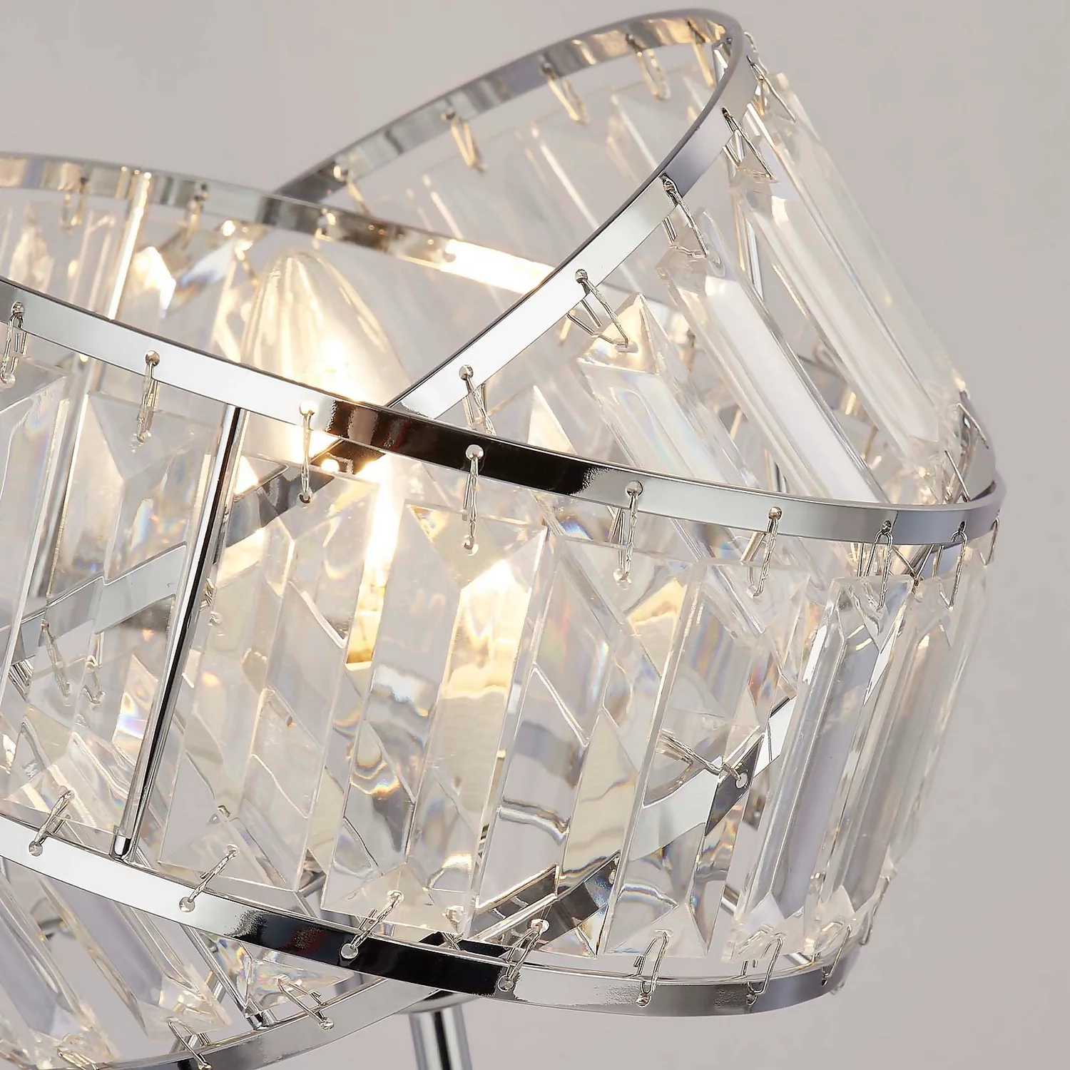 The Dita banded crystal table lamp adds glamour to any home.