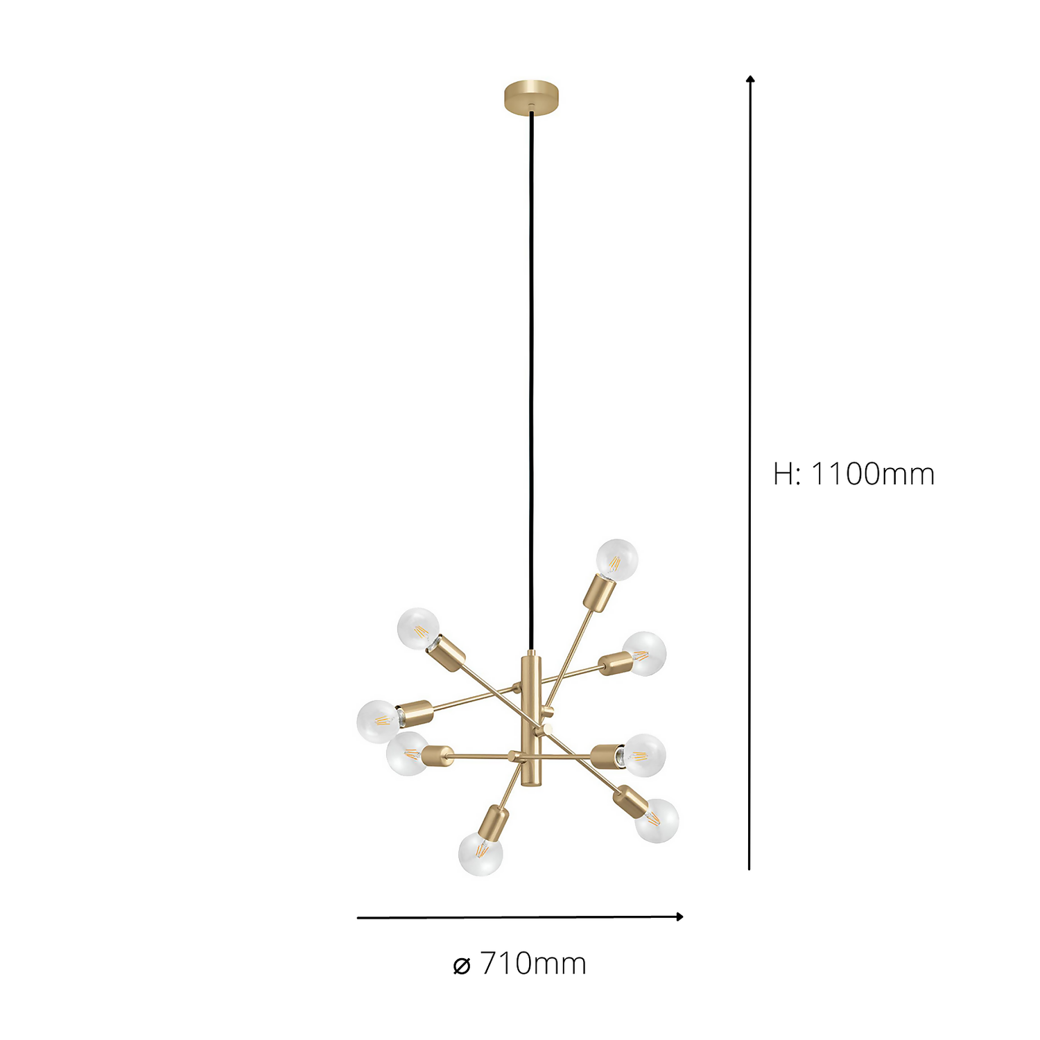 Eglo Gradoli 1 8 Lamp Pendant Ceiling Light – Brushed Brass