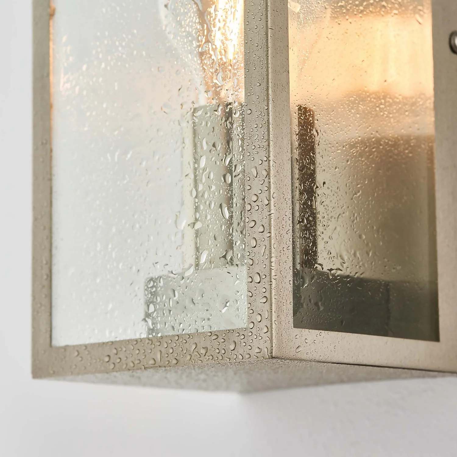 A box lantern, classic, timeless styling, in a brushed stainless steel finish. The perfect addition to complement today’s exterior architecture.