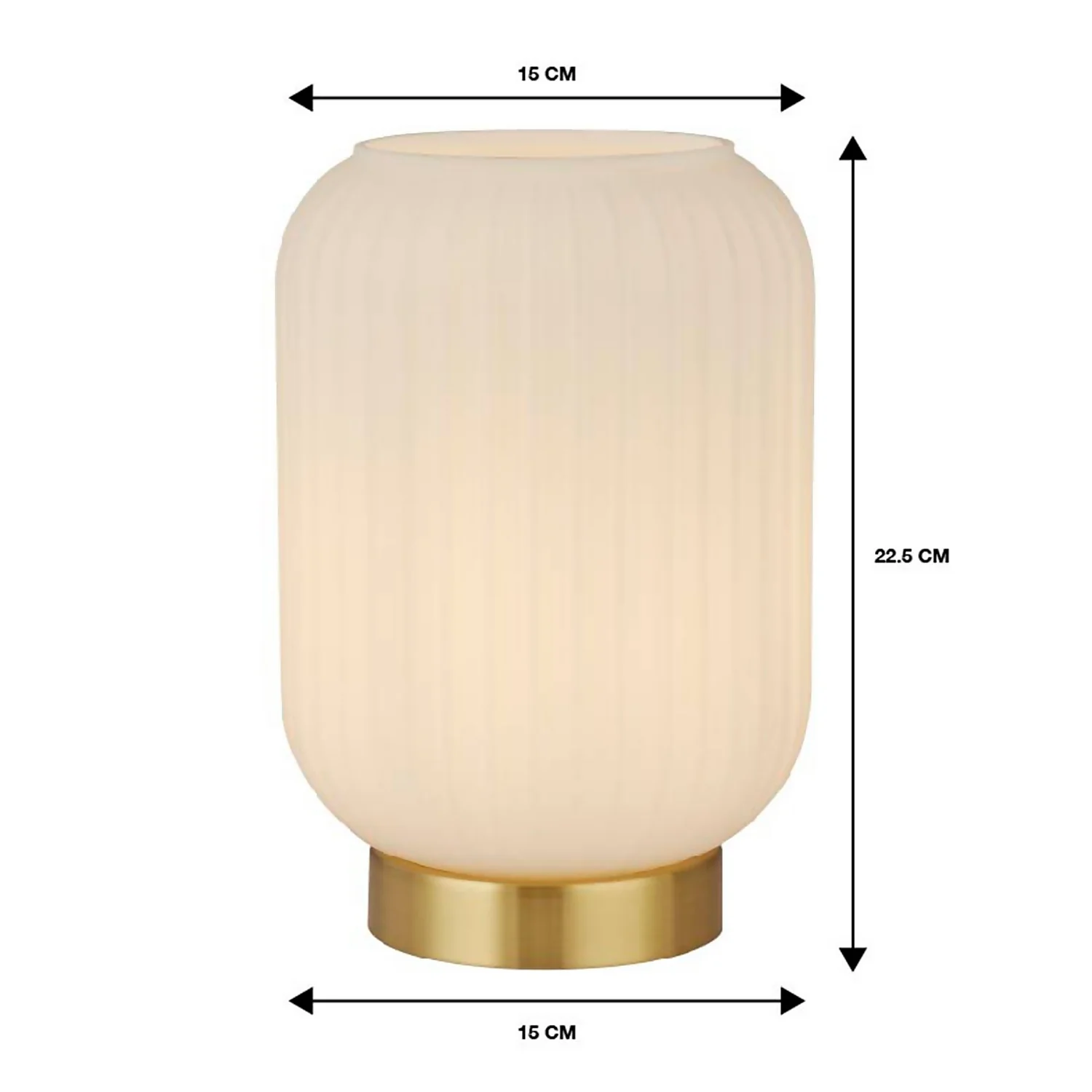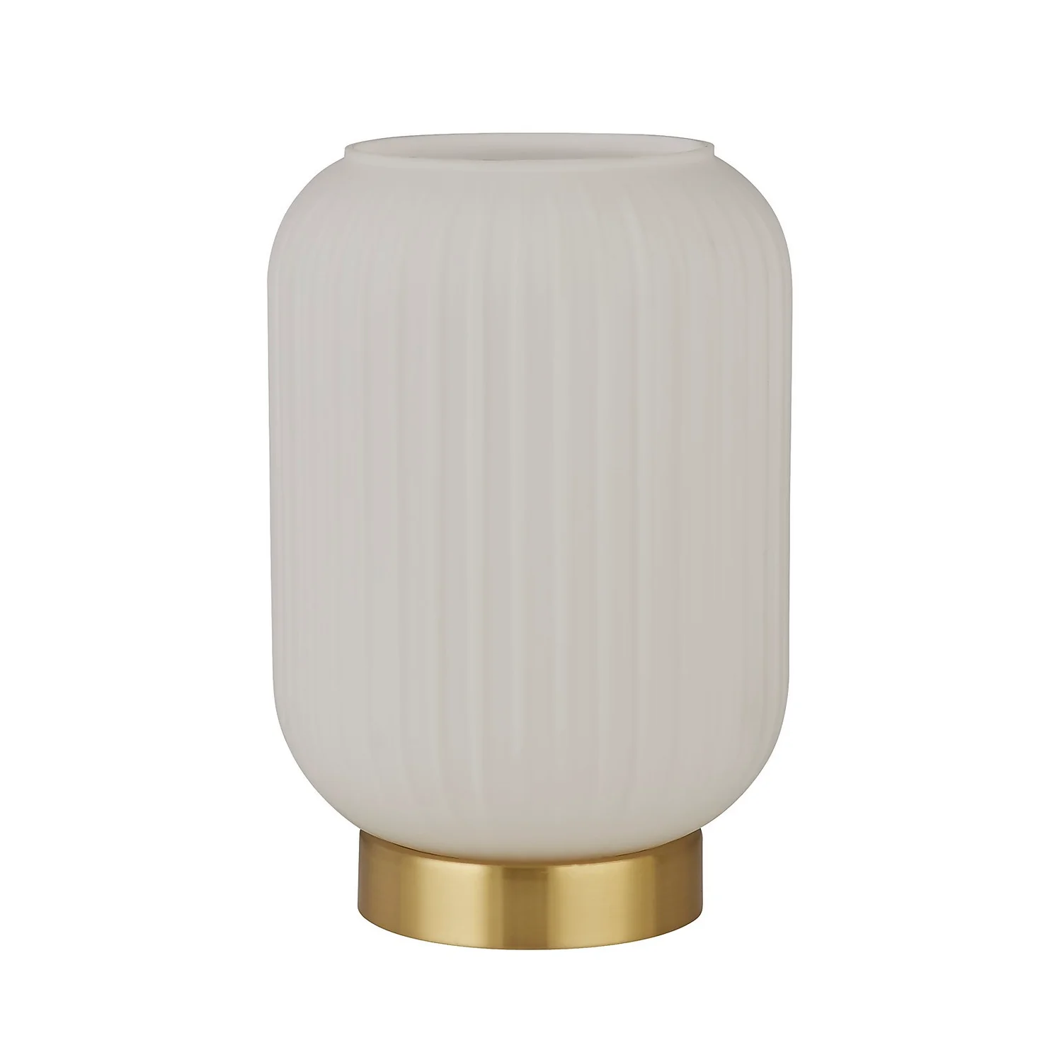 A simple play on art deco style, the Pearl table lamp is the perfect combination of frosted glass and brushed gold finishes.